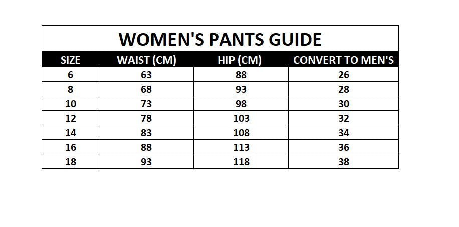 Note: Size chart should be used as a guide only. Garments will vary according to fit.