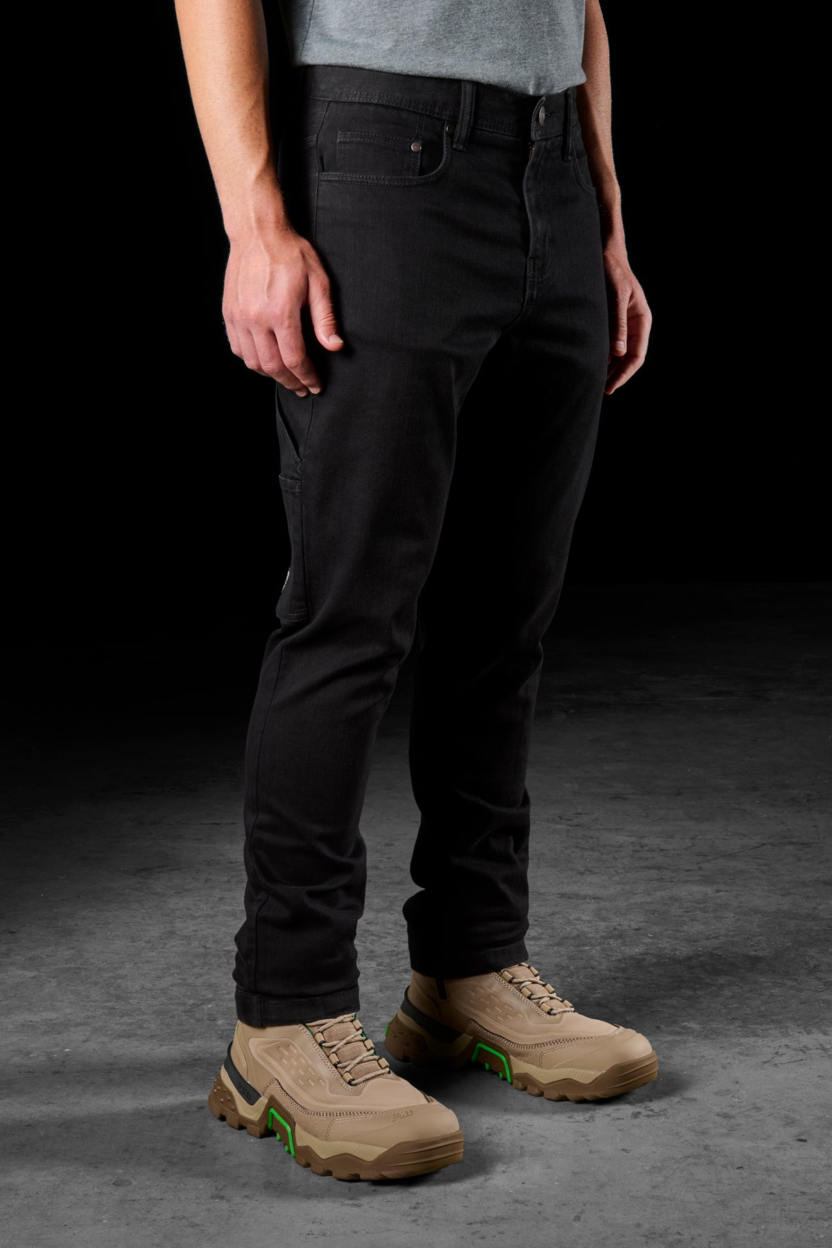 FXD WD.4 WORK DENIM IS BUILT USING A DURABLE 11OZ (372GSM) STRETCH POLY COTTON BLEND AND FEATURES COOLMAX® MOISTURE WICKING AND COOLING PERFORMANCE FIBER TECHMOLOGY.