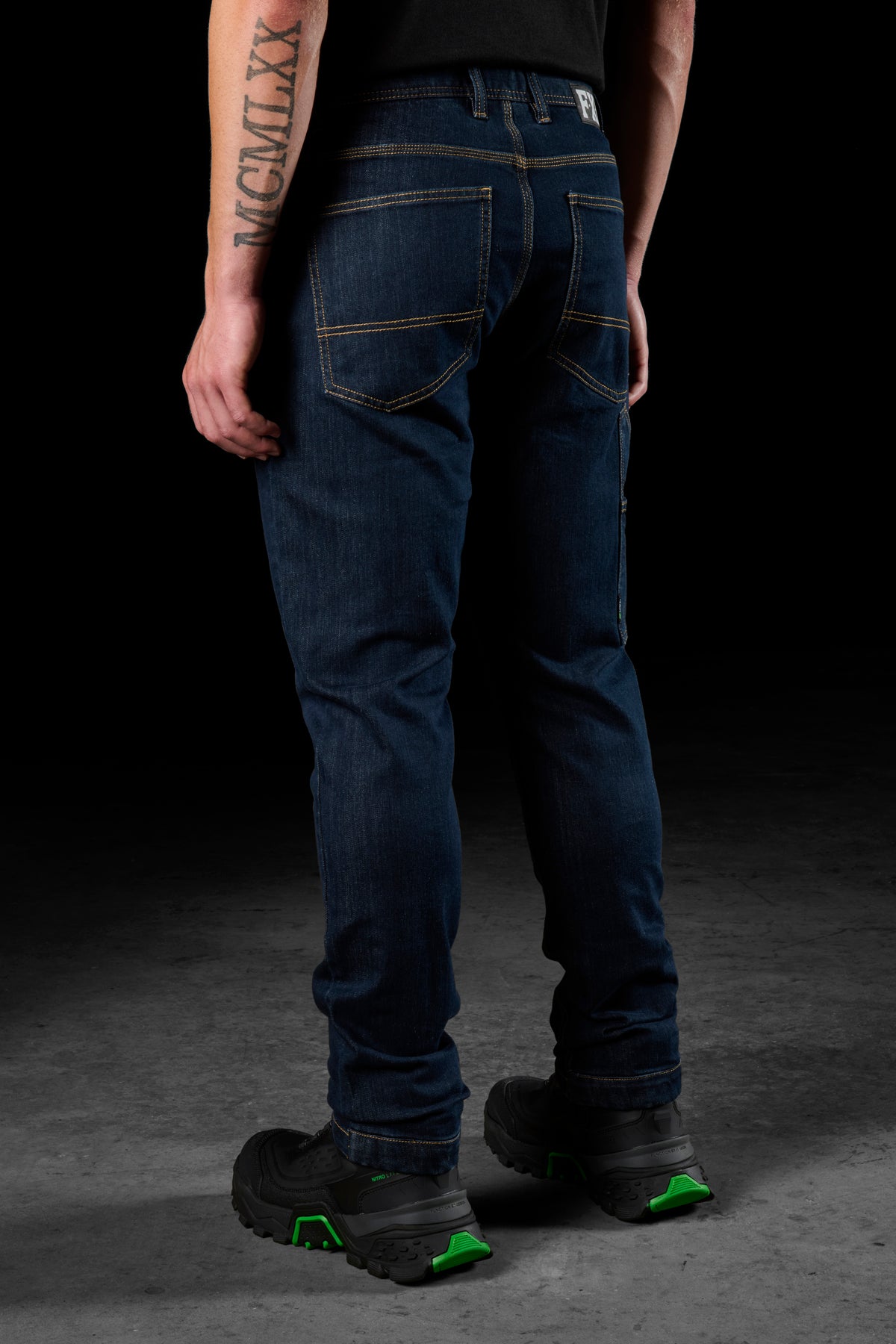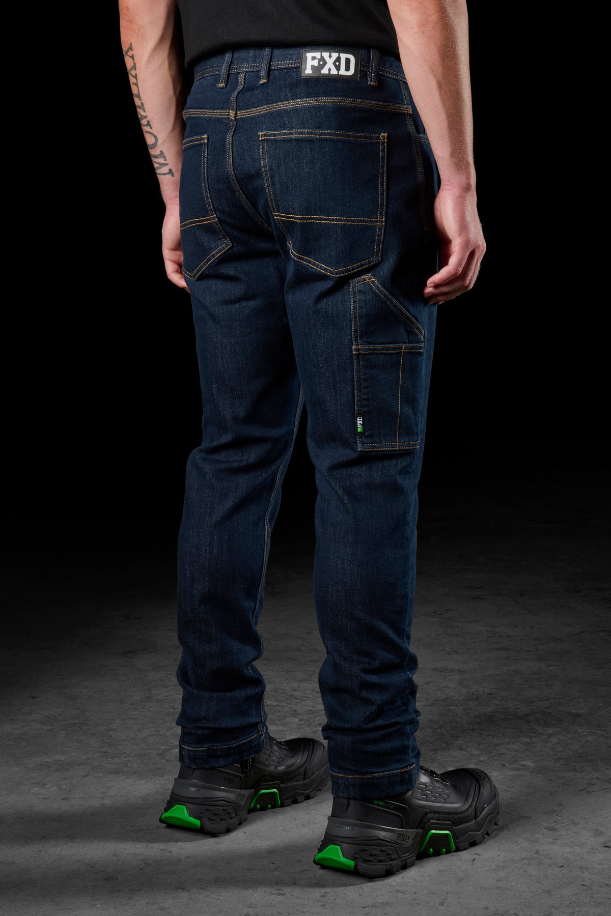 FXD WD.4 WORK DENIM IS BUILT USING A DURABLE 11OZ (372GSM) STRETCH POLY COTTON BLEND AND FEATURES COOLMAX® MOISTURE WICKING AND COOLING PERFORMANCE FIBER TECHMOLOGY.