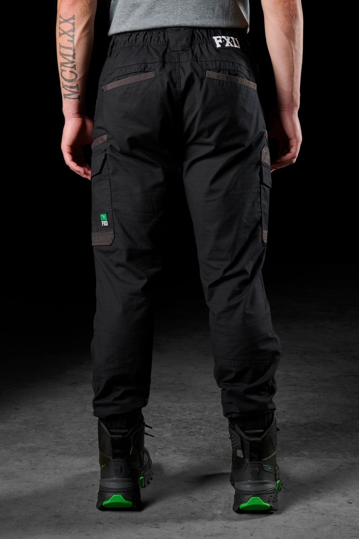 WP◆12C - CUFFED ELASTIC WAIST STRETCH RIPSTOP WORK PANT - Black
